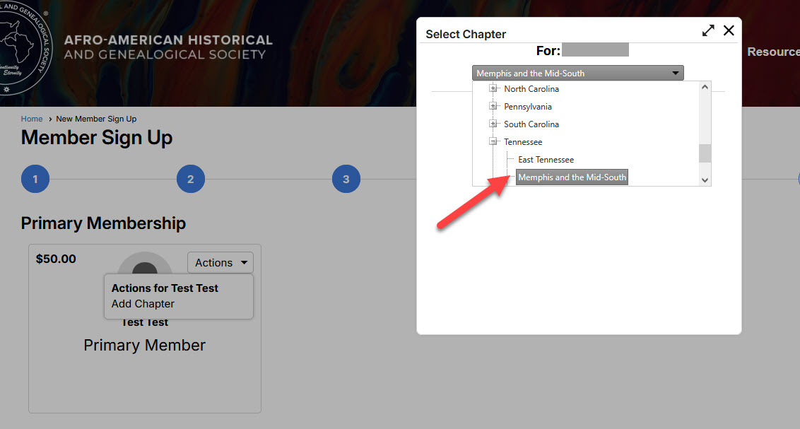 Step 5b. Select "Memphis and the Mid-South"